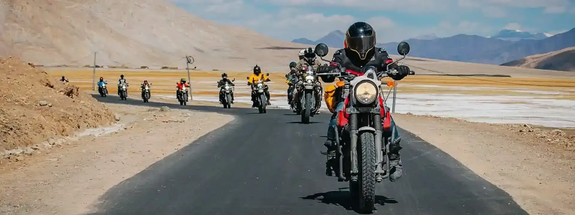 Riders ascend through Photi La's panoramas and Hanle's observatory vistas, circling back via stark deserts to fertile valleys. Nubra's double-humped camels and Pangong's reflections create unforgettable contrasts. Marshals lead with precision on unpredictable paths.